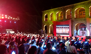 由于本次活動為露天場地,舞臺背景為古建筑遺址,周圍是涉外賓館和居民小區(qū),并且當(dāng)天有七級大風(fēng)肆虐,在客觀上給活動帶來了相當(dāng)?shù)碾y度。