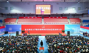 11月4日晚7:00,北京科技大學(xué)服務(wù)保障國(guó)慶70周年活動(dòng)總結(jié)表彰大會(huì)在體育館隆重舉行。校領(lǐng)導(dǎo)、職能部門、參加國(guó)慶70周年慶?;顒?dòng)群眾游行、廣場(chǎng)合唱、廣場(chǎng)聯(lián)歡和志愿服務(wù)的全體師生及相關(guān)保障服務(wù)人員1800余人,本科2019級(jí)新生代表1000余人參加大會(huì)。