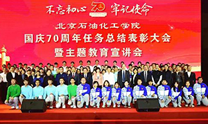 11月8日,北京石油化工學(xué)院隆重召開(kāi)服務(wù)保障中華人民共和國(guó)成立70周年慶祝活動(dòng)表彰大會(huì)暨主題宣講會(huì)。學(xué)校領(lǐng)導(dǎo)、學(xué)校全體中層干部、服務(wù)保障國(guó)慶70周年活動(dòng)的全體師生、在校師生代表參加大會(huì)。